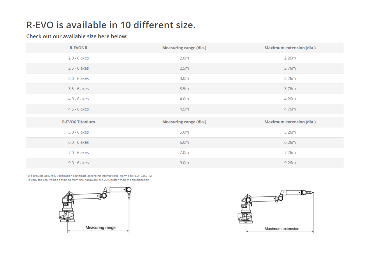 R-EVO è disponibile in 10 diverse dimensioni da 2.0m range fino a 9.0m range.
